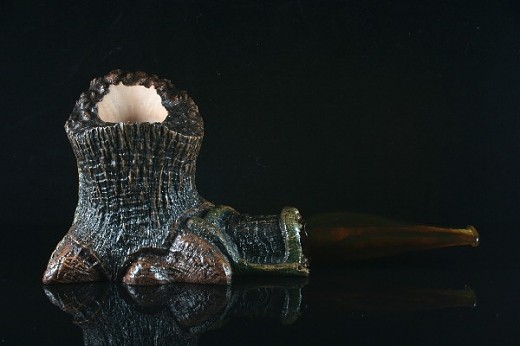 Tige et fourneau sont percés à 4mm, les teintes sont faites à partir d'eau et de cire de carnauba.