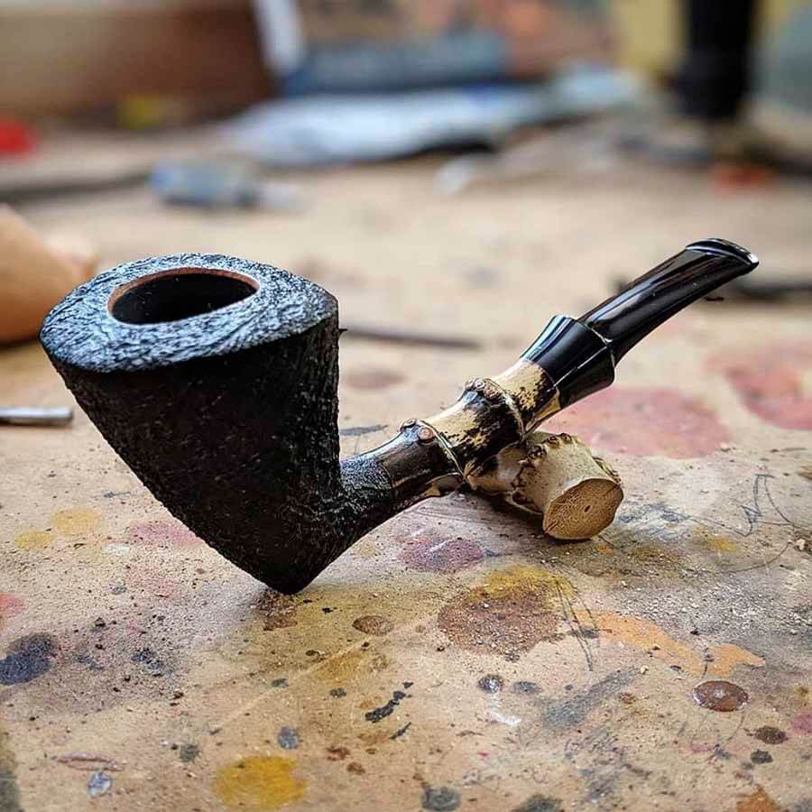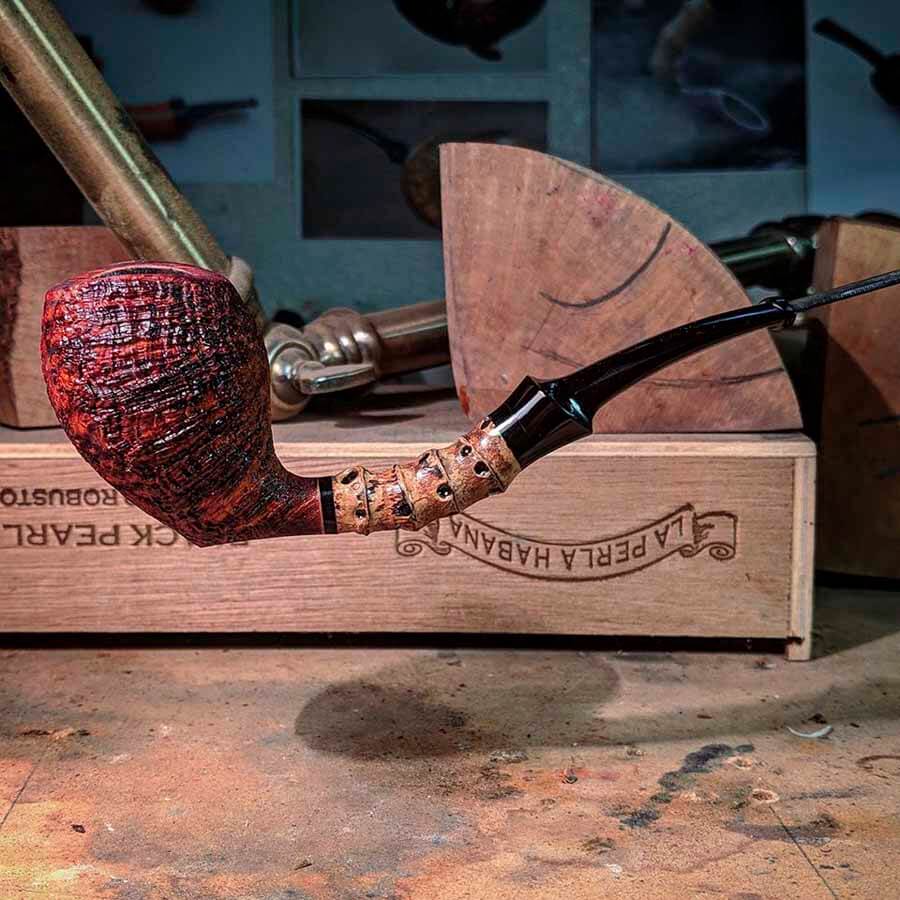 Sa bruyère vient notamment de chez Manno, et ses ses tuyaux sont en ébonite allemand de chez Sem ou Nyh. Il aime également travailler le buis et le bambou.
