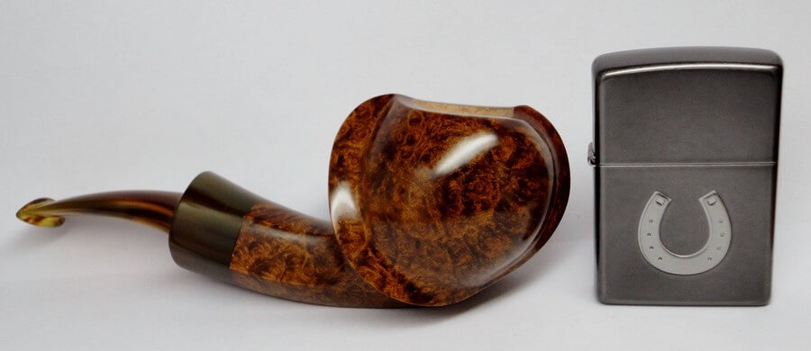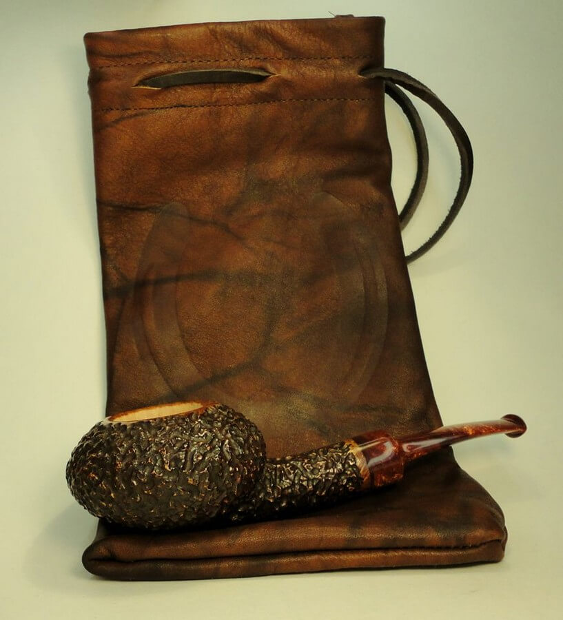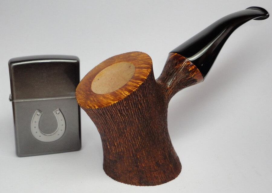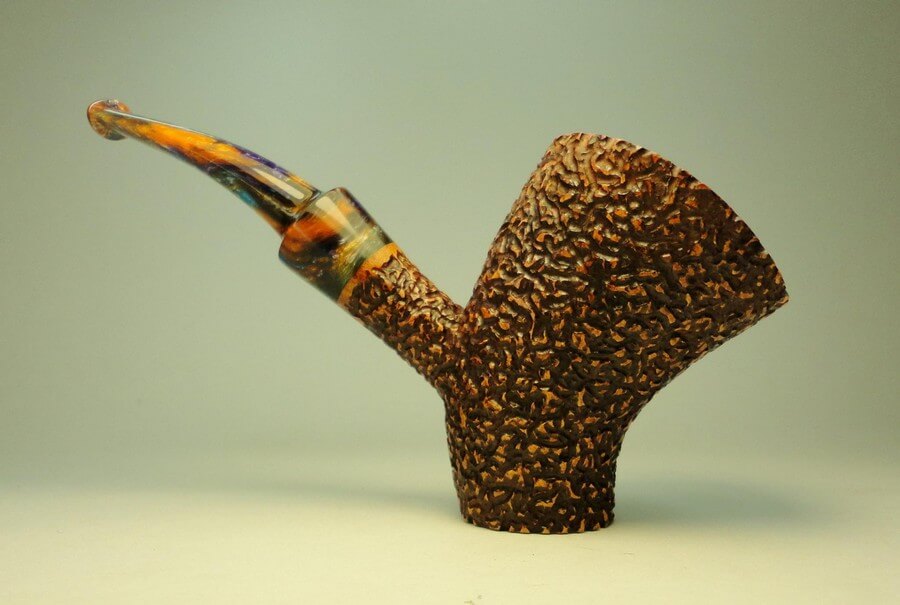 Sa bruyère vient principalement de chez Mimmo, et ses tuyaux sont en majorité en ébonite ou en acrylique. Sa finition préférée, ce sont les rustiquées, il ne produit des lisses que s’il considère que le grain en vaut la peine. Faute de temps, il ne réalise que trois ou quatre pipes par mois.