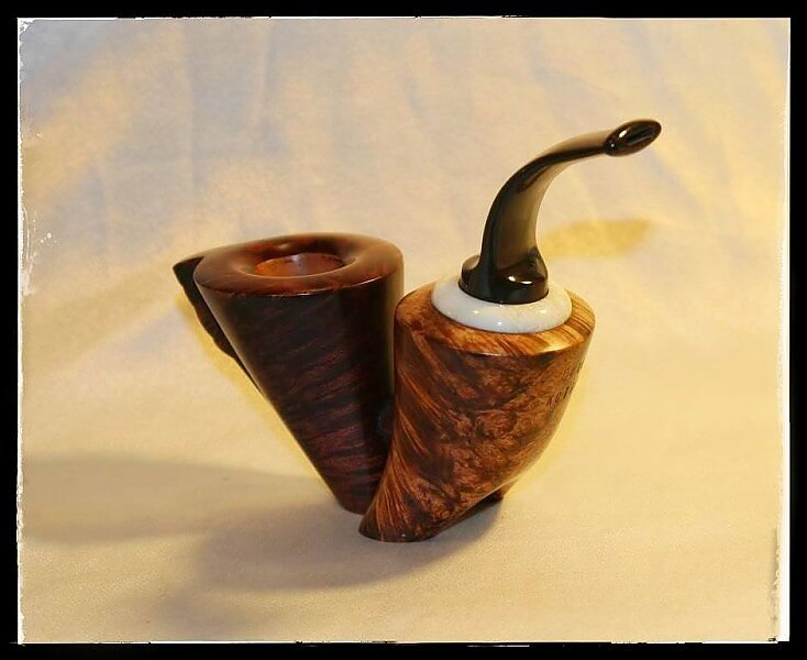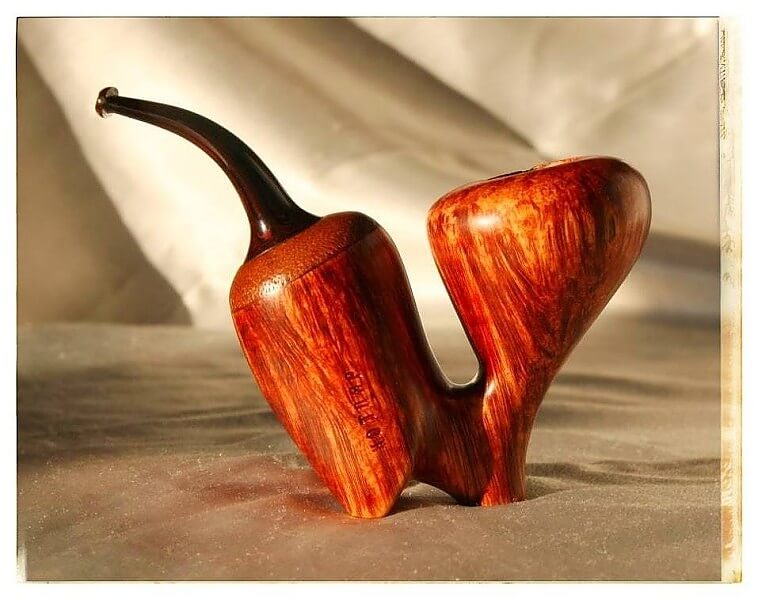 Sa bruyère vient d'Espagne ou de Sardaigne, Ses tuyaux sont en ébonite, en cumberland, ou d'autres matériaux qu'il se procure en Allemagne. Il aime ajouter des bagues en défense de mammouth ou de phoque, ou en cornes, mais aussi des bois exotiques.