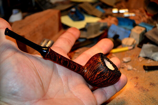 C'est d'ailleurs chez Matzhold qu'il se fournit en bruyère. Il emploie pour ses tuyaux de l'ébonite ou du cumberland. Toutes ses pipes sont finies à la cire.