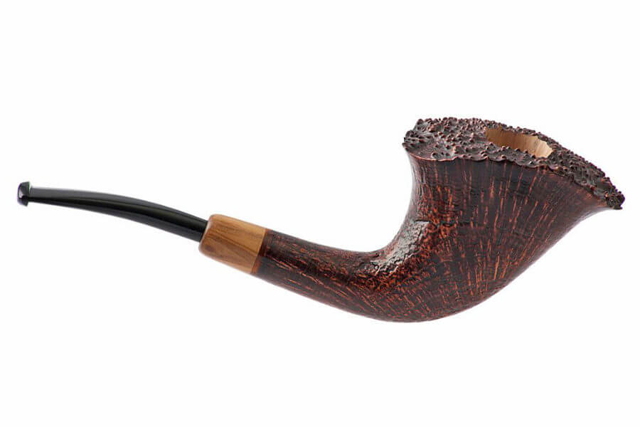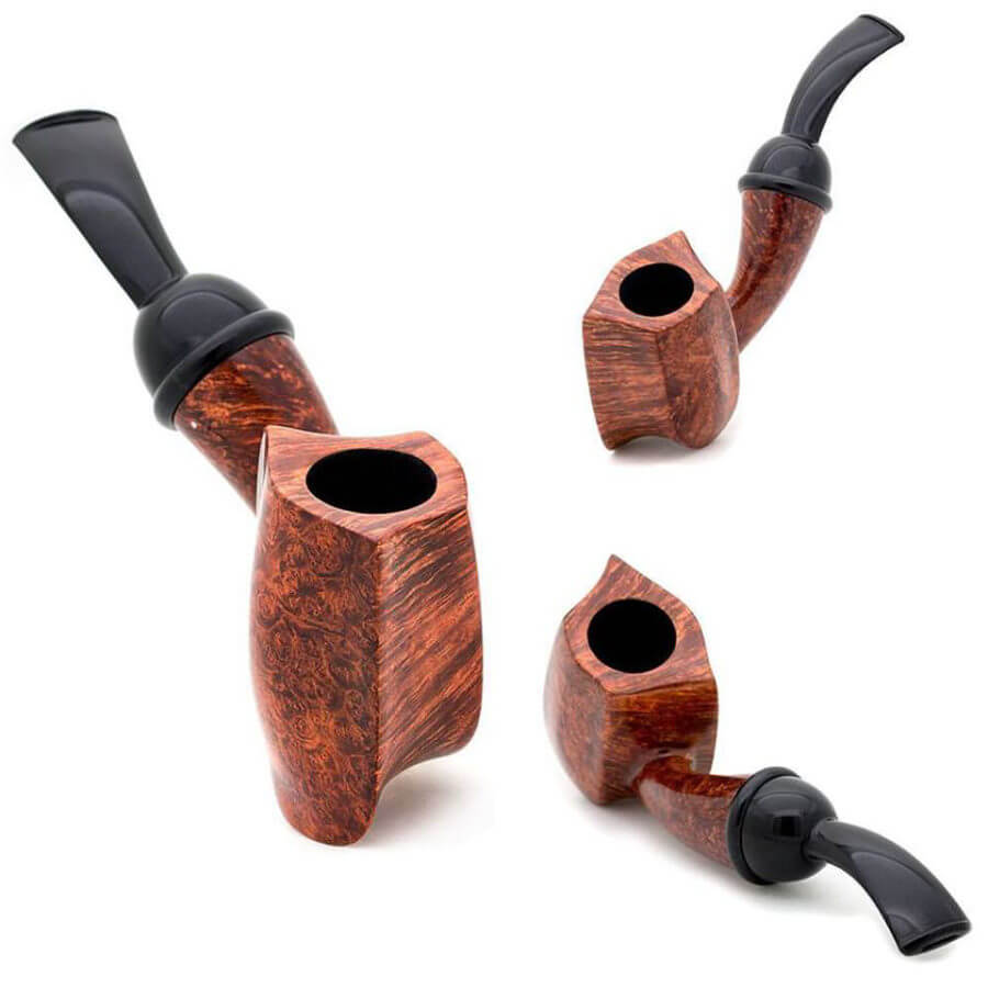 Come materiali uso radica che stagiono per tre o quattro anni e in misura minore bog oak e ulivo. I bocchini sono prevalentemente in ebanite o cumberland. Non ho un grading perché ogni oggetto deve avere una sua valutazione.