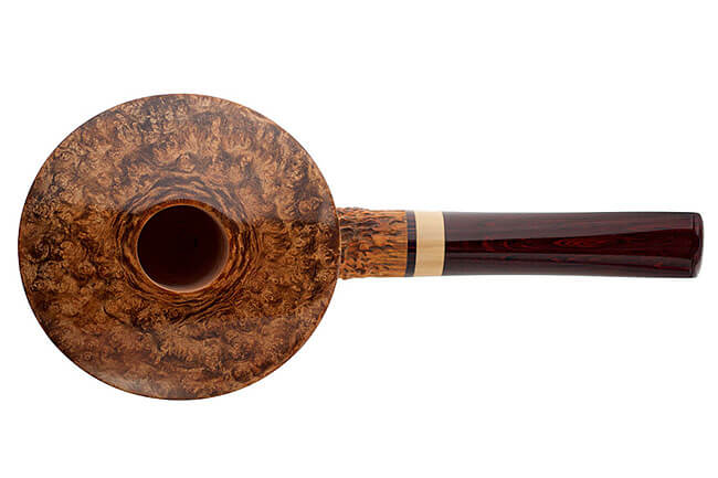 Le bois justement : Alessandro tavaille sur de la bruyère vieille trois ou quatre ans, mais aussi sur le morta et l'olivier. Ses tuyaux sont en ébonite et cumberland.