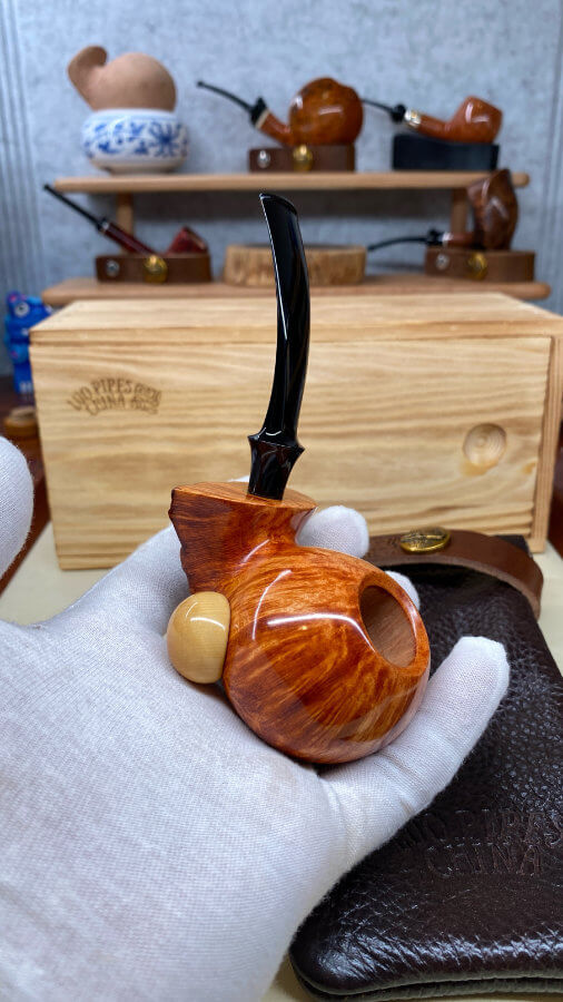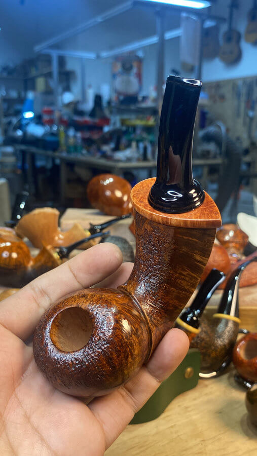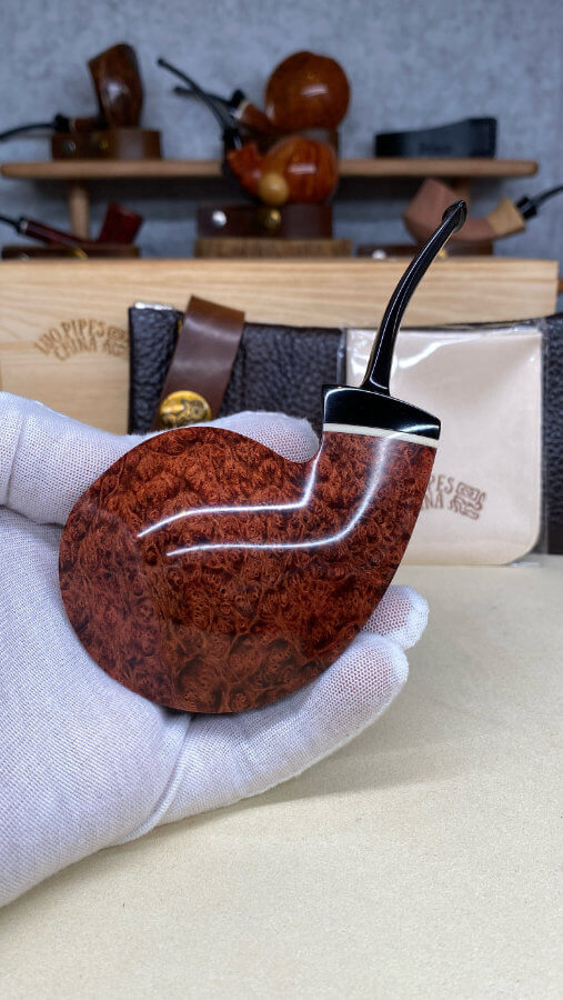 Luo propose des pipes lisses ou sablées, et ce fumeur reste très attentif aux détails, prenant beaucoup de temps à affiner ses pipes au millimètre près.