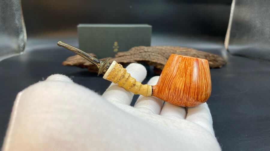 Choisissant soigneusement sa bruyère, et veillant au grain - c'est le cas de le dire - il va également y adjoindre des bois exotiques, de l'argent, du cuivre ou de l'ivoire de mammouth comme éléments décoratifs.