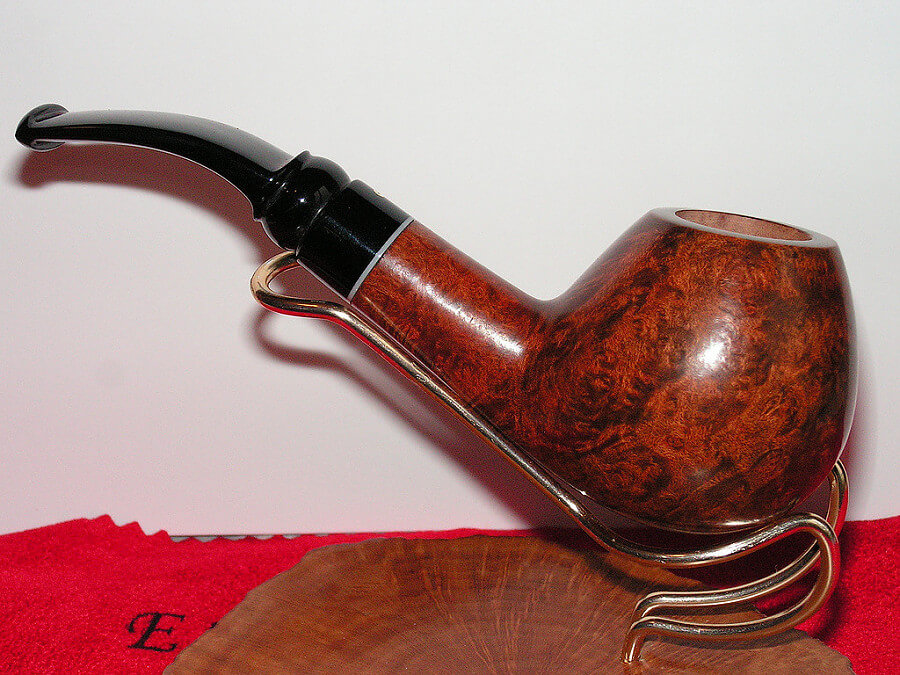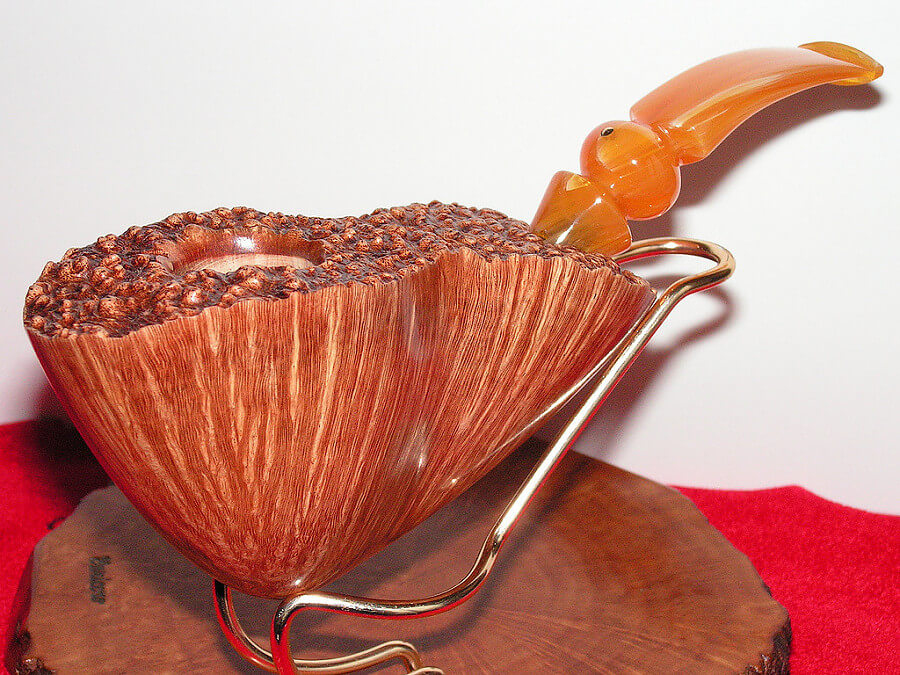 Son logo reproduit une pièce d'horlogerie, il produit à peu près une centaine de pipes par an. Pas de gradation, puisque la beauté de la bruyère suffit. Il se contente de teindre la pipe avec de l'alcool coloré, puis de passer à la carnauba.