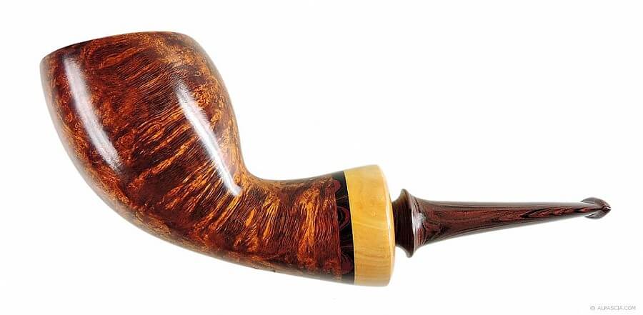 Il emploie de la bruyère calabraise, italienne et corse, qu'il stocke encore un an ou deux avant de les travailler. Ces tuyaux sont en ébonite allemand.