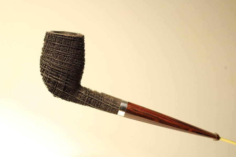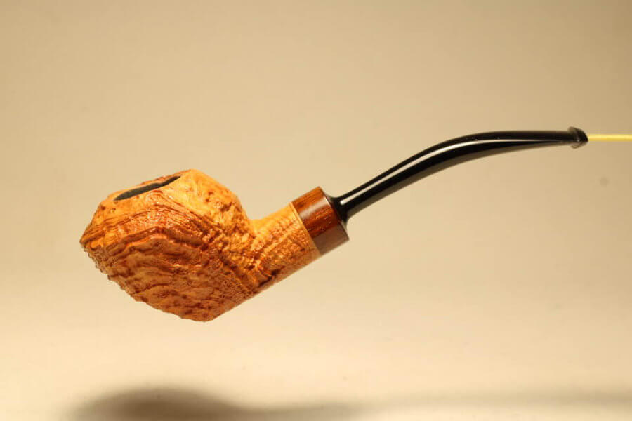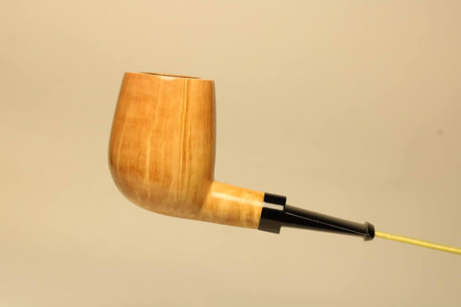 Sa bruyère, qu'il laisse reposer au minimum un an, vient de Grèce, bien sûr, mais aussi d'Italie. Ses tuyaux sont en ébonite, toujours en provenance de la maison Sem. Il peut y ajouter des allonges ou des bagues en argent, en corne, et parfois en bambou.