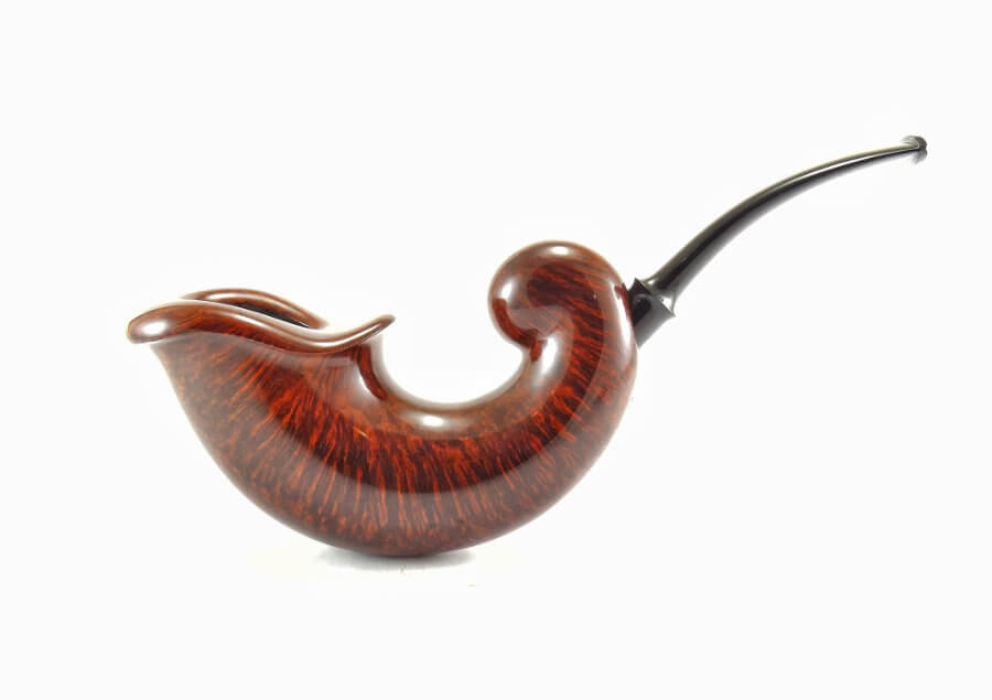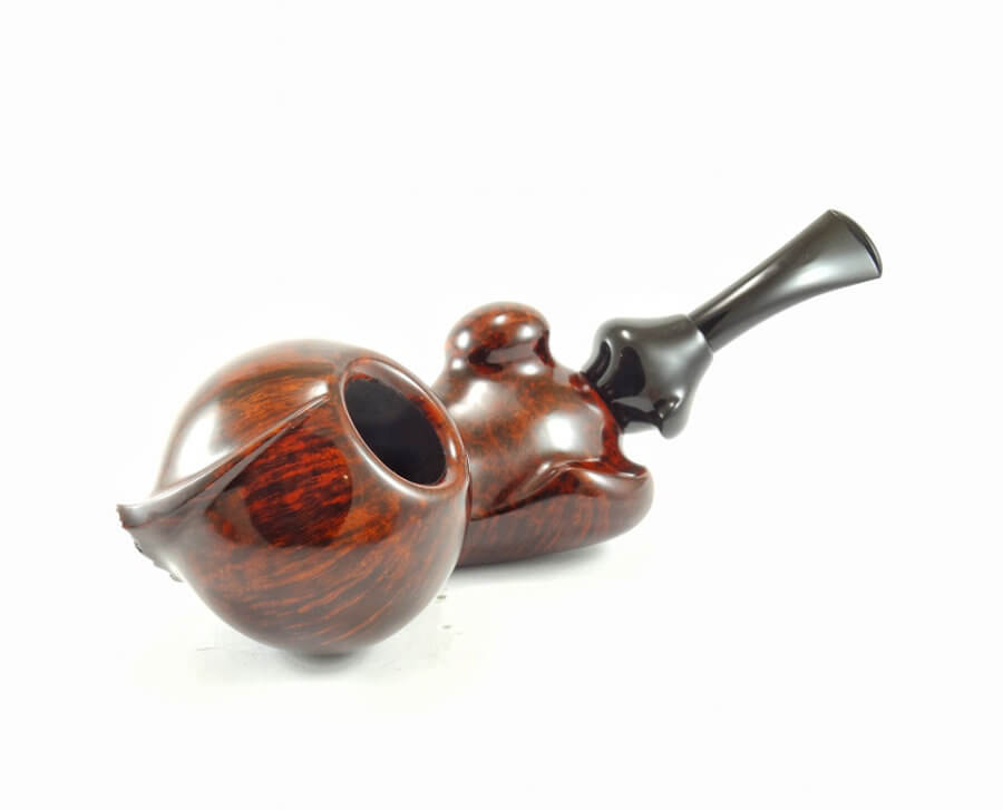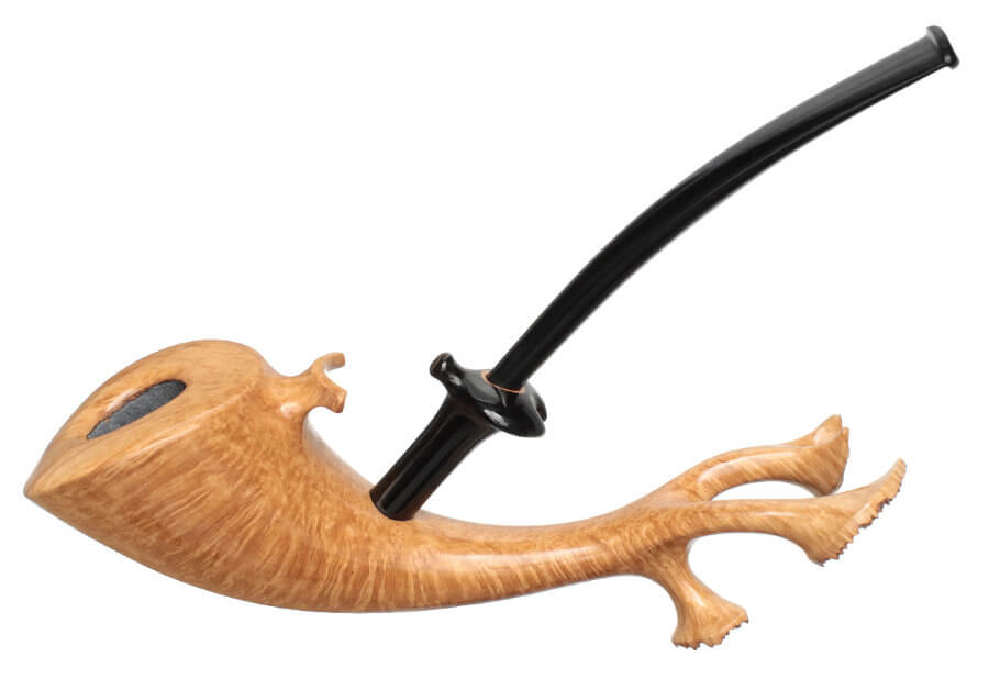 Il propose des pipes lisses et sablées, et s'il n'a pas de réelle préférence pour une finition, il considère que le sablage ajoute une réelle dimension. Il passe pour cela beaucoup de temps à obtenir l'effet désiré.