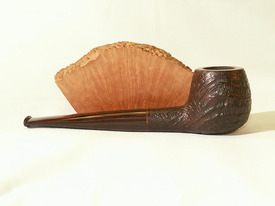 Il travaille avec de la bruyère grecque, italienne ou algérienne. Ses tuyaux sont en ébonite ou en cumberland allemands, aussi en acrylique. Il propose des modèles lisses ou sablées, avec des décorations variées : bois de cerf, ivoire, acrylique, bois exotiques, bambou, etc. ...