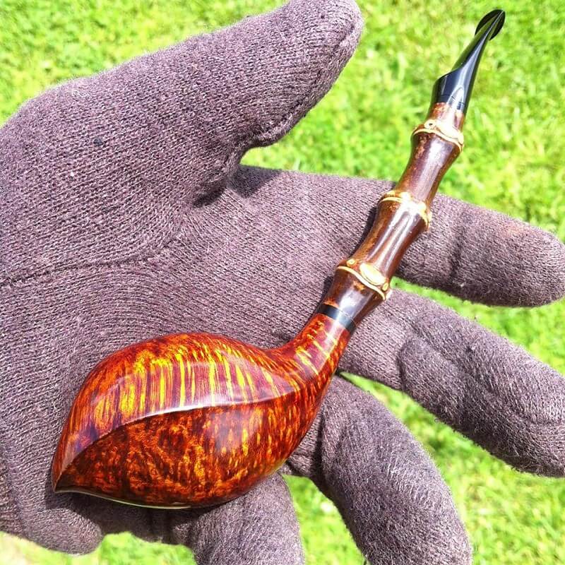 Il utilise également certains bakélites, du buis ou de l'érable, mais aussi du bambou. Ses pipes sont lisses ou sablées. Une lisse est pour lui un défi, mais les sablées sont ses préférées.