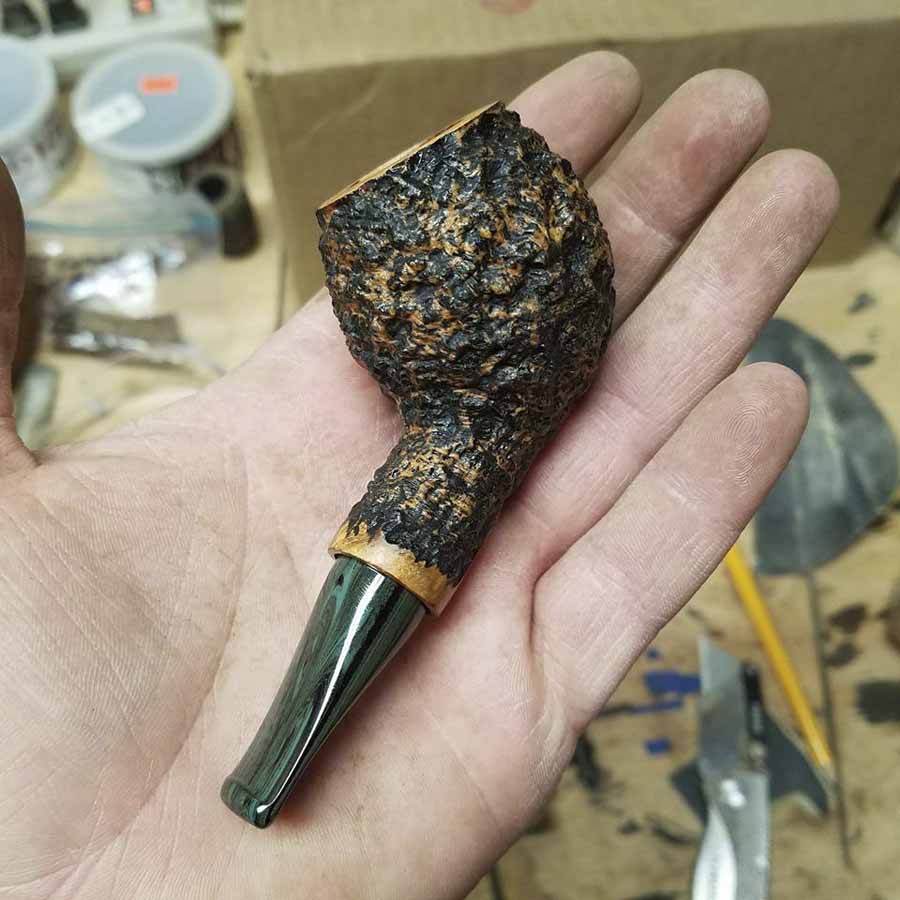 Sa bruyère vient de coupeurs italiens ou algériens, et ses tuyaux, en ébonite ou cumberland, de chez SEM ou NYH.
