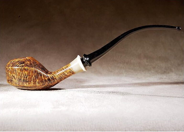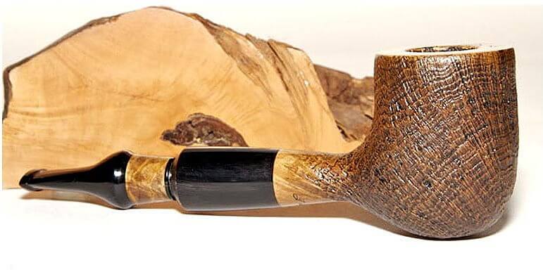 L'une de ses rustications préférées reste la finition "bronze". Il propose aussi bien des tuyaux acrylique, qu'en ébonite ou en cumberland, et il apprécie les bagues, en ébonite, ou en bois exotiques, comme l'ébène.
