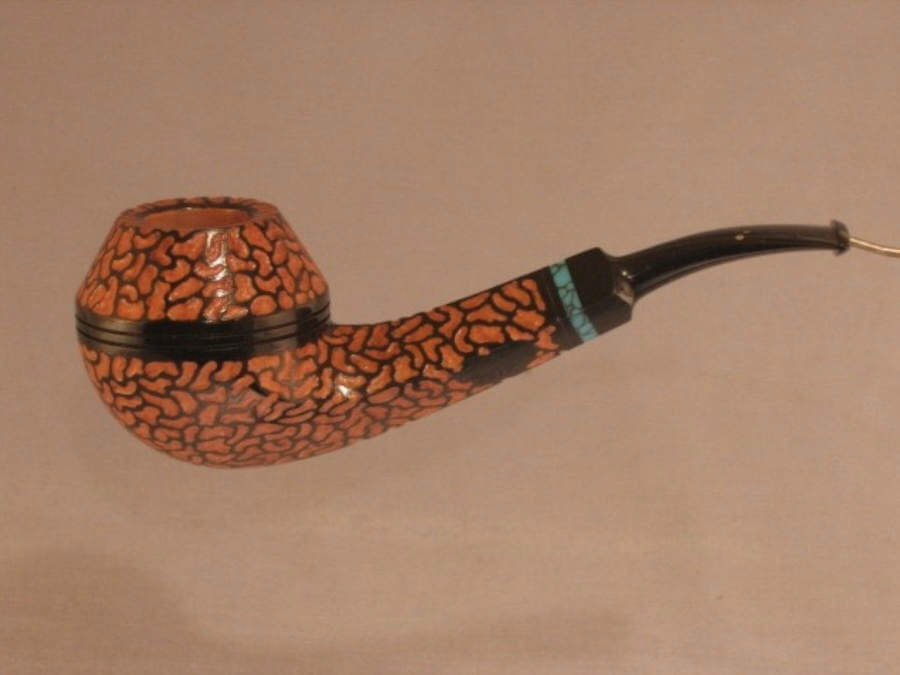 Tous ses tuyaux sont en ébonite allemand, auquel il adjoint des bois exotiques, de l'os, de la corne, de l'acrylique, du faux marbre, mais aussi de la turquoise.