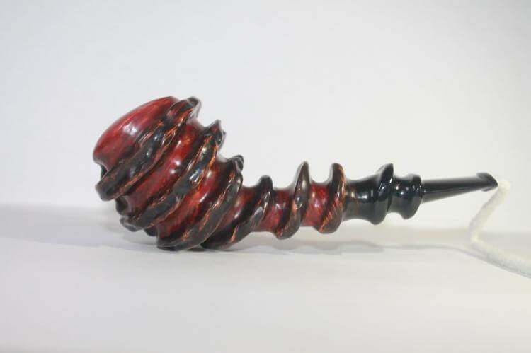 Il travaille toujours avec de la bruyère italienne. Ses tuyaux sont en ébonite allemand ou japonais, et parfois, il y ajoute de la corne.