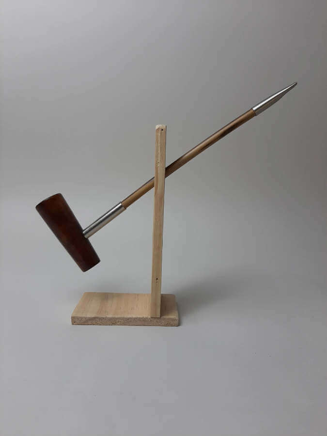 Olivier réalise une trentaine de pipes par an. Chacune, hormis le temps de trouver la pièce de bois qui conviendra, lui demande une semaine de travail. Preque toutes sont teintées, ébène, bistre rouge, et quelques réalisations bleu-vert. Sur demande, une teinte rouge a été trouvée, depuis sa préférée.