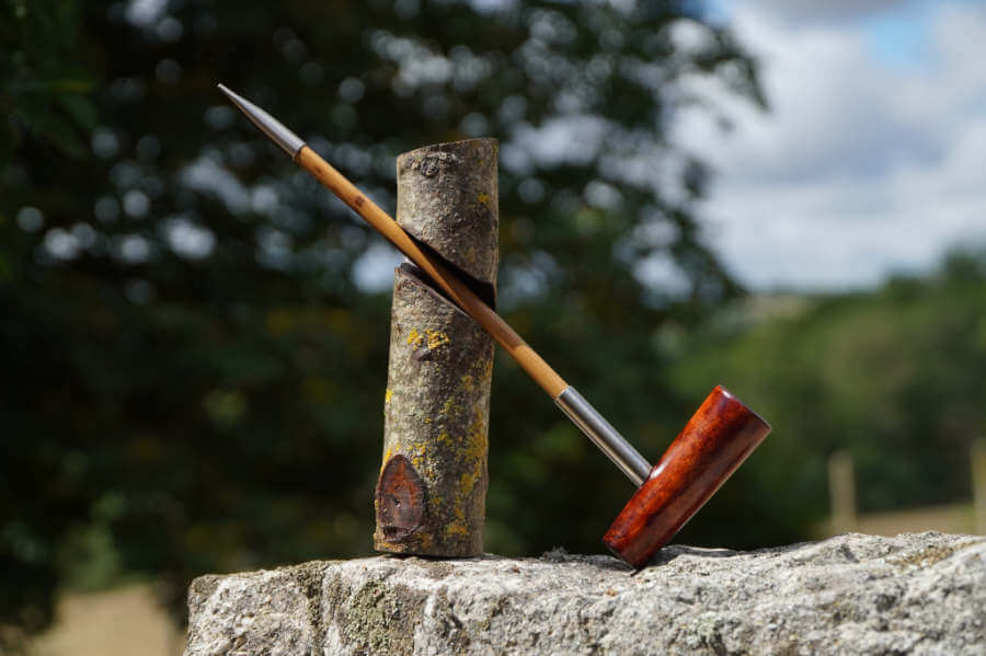 Pour les fourneaux, Olivier taille le noyer, le merisier, l'acacia, le buis ou l'orme. Pour les tuyaux, ce sont le bambou noir, l'érable negondo, le forsythia, le noisetier ou le surau qui sont utilisés. Tous vont reposer entre un et trois mois avant taille et finition. Aucune pipe n'est préculottée.
