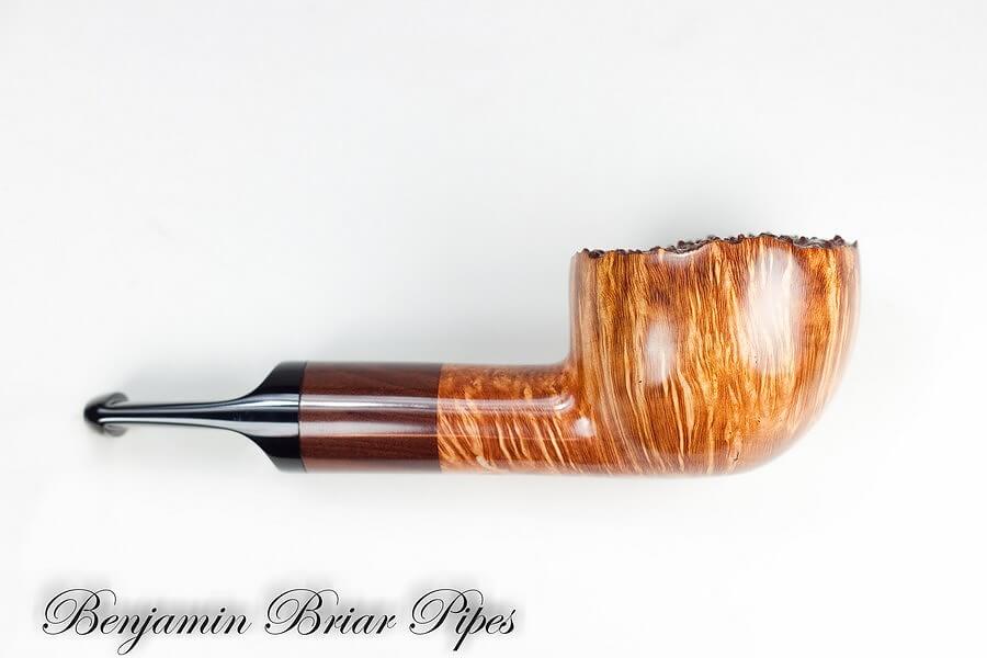 Benjamin commence toujours par réaliser des croquis sur papier, puis reporte le dessin final sur le bloc de bruyère qui lui semble approprié. Il découpe ensuite la forme à la scie à ruban, et procède aux perçages, d'abord la tige, puis la mortaise, et enfin le fourneau. Il découpe et perce le tuyau, l'adapte à la tige avant de travailler la forme de la bruyère, avec une ponceuse à disque. Il s'applique à peaufiner en particulier la liaison tige-tuyau, en soignant l'emboitement tenon-mortaise.