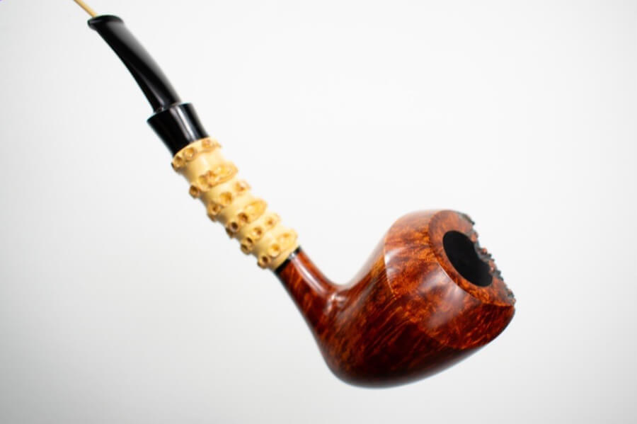 En 2019, il a commencé à modifier et vendre des pipes de maïs, puis il est passé à la finition des blocs en bruyère pré-percées. Cela l’a amené à se procurer de plus en plus d'outils, ce qui lui a permis enfin de créer des pipes entièrement faites main à partir de 2022. Comme beaucoup, il a appris en pêchant des informations sur le Net, en regardant des tutoriels sur Youtube et en participant au Pipemakers Forum. Très vite, il a compris que la meilleure façon de s’améliorer était de confronter son travail avec des artisans expérimentés. Jusqu’à présent, il a eu l’honneur de visiter les ateliers d’Abe Herbaugh, Kadesh Swanson, Matt Roussell et Robert Amundson. Il a beaucoup appris en observant certains de ces artisans et en leur posant des questions.