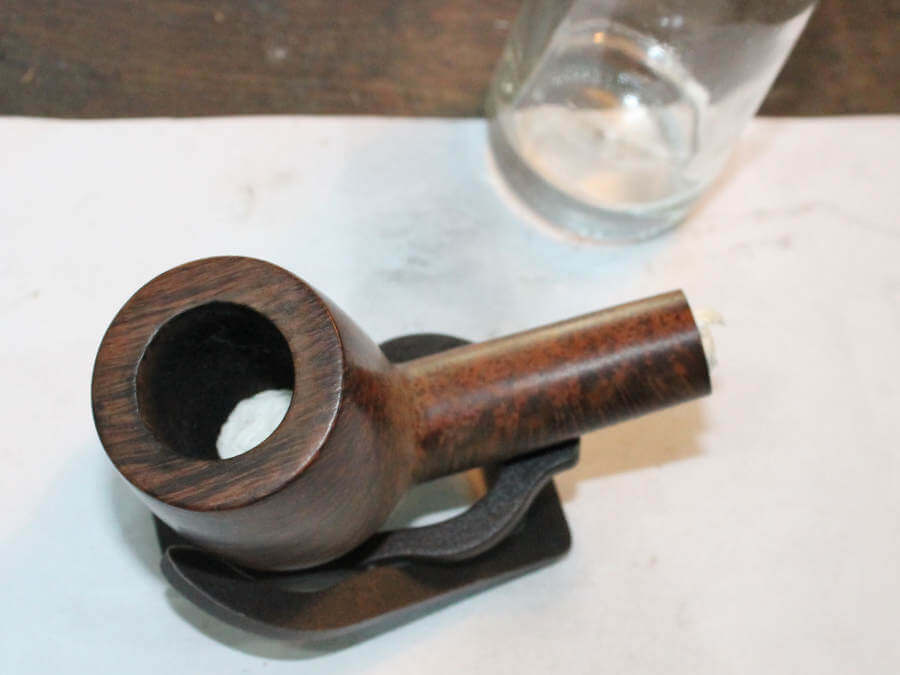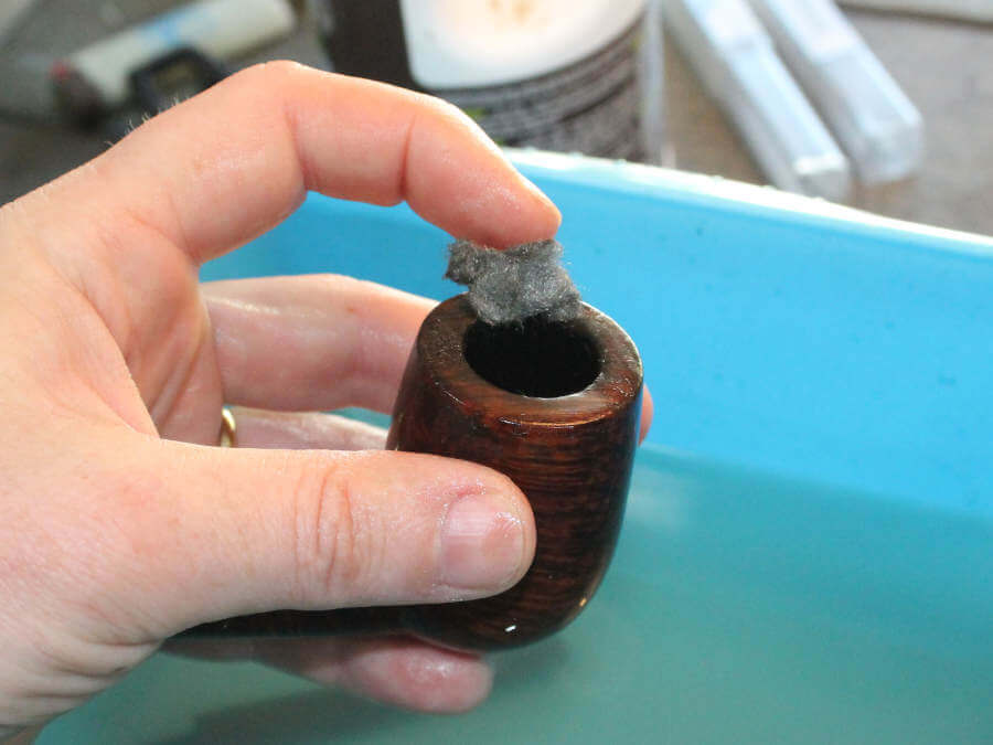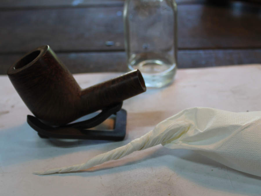 Est-il nécessaire de remplir complètement la chambre avec de la ouate (ou du sel) pour que la chambre soit également nettoyée en profondeur avec de l'alcool ? J'ai fait quelques expériences à ce sujet dans le passé et j'ai constaté que le nettoyage en profondeur à l'alcool est surtout important pour la tige de la pipe et le trou de tirage, mais pas tellement pour le fourneau. La raison en est très simple : Lorsque vous fumez votre tabac, les huiles, goudrons et autres composants volatils du tabac sont soit brûlés, soit descendus avec la fumée. Ils ne colleront guère aux parois de la chambre en raison de la chaleur et de l'accumulation de culot. En revanche, ils se condensent principalement dans le trou de tirage de la tige.
