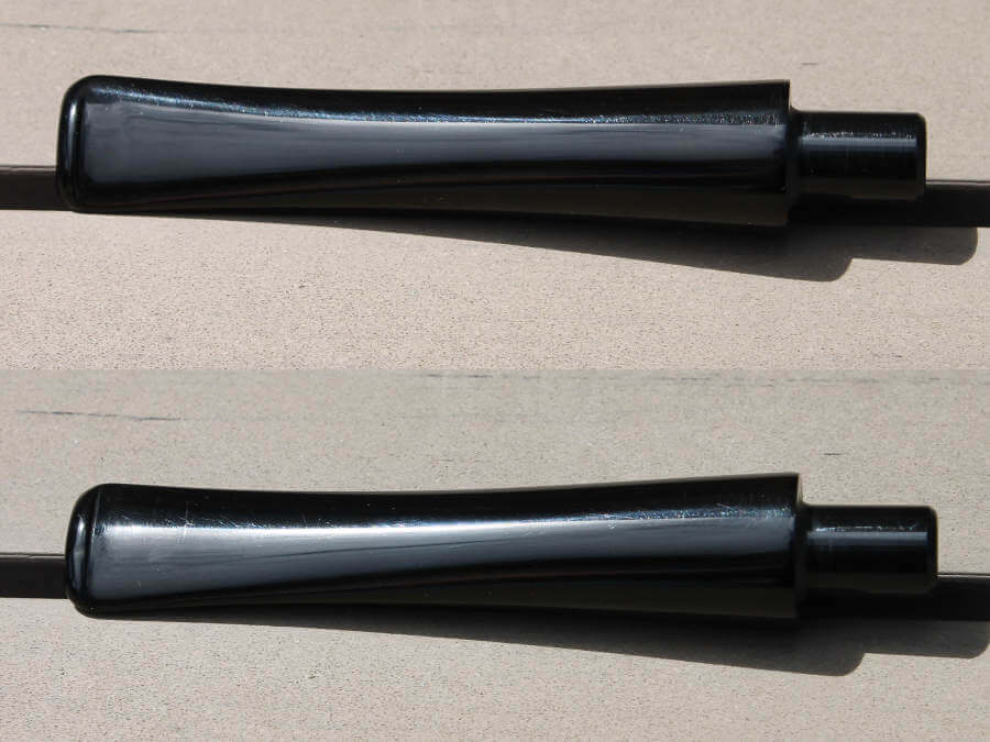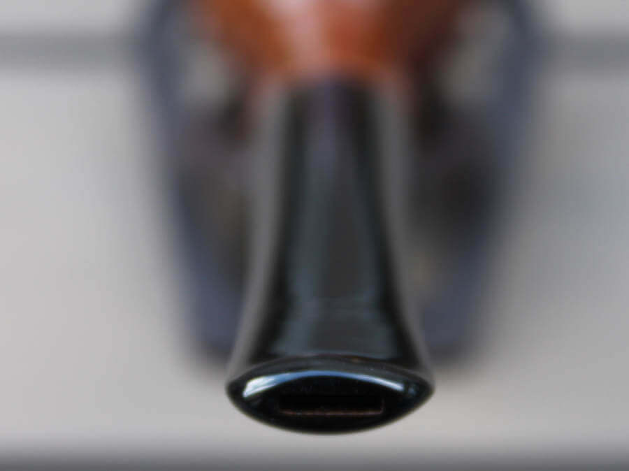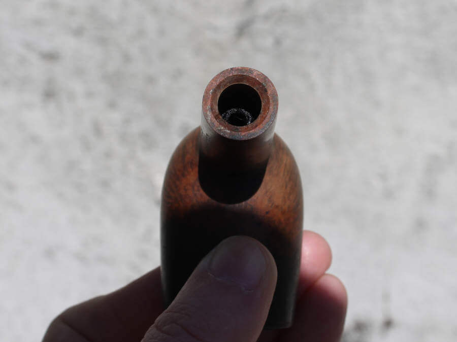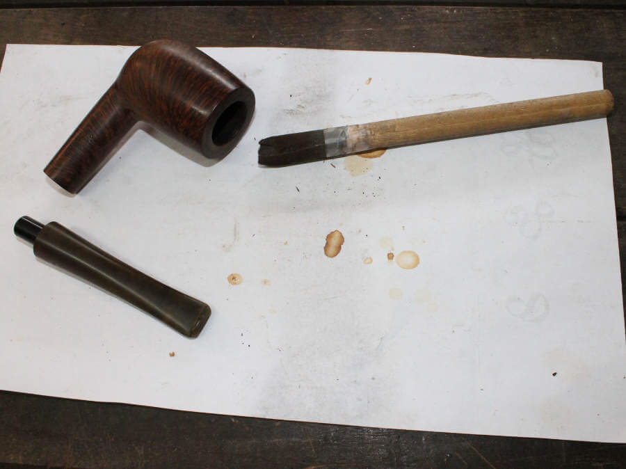 C'est tout pour le fourneau pour le moment. Faisons d'abord attention au tuyau. L'extérieur de la tige a déjà été lavé avec le savon noir et un léger frottement avec la laine d'acier fine. Avant de commencer à la nettoyer davantage, j'ai décidé d'améliorer le tenon en mortaise en lui donnant une entrée d'air conique. Cela permettra de réduire les turbulences pendant le fumage, de sorte que la pipe n'aura pas tendance à gargouiller.
