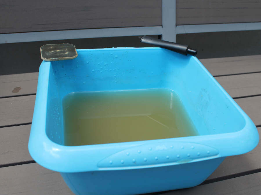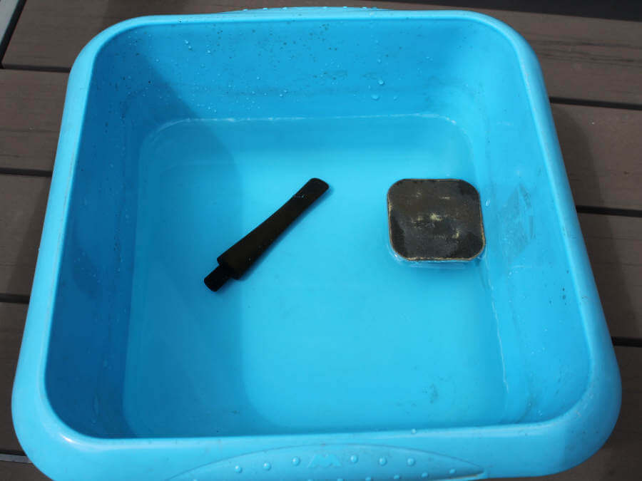 Le premier tampon est le plus important. C'est celui qui éliminera la plus grande partie de l'oxydation. Regardez la couleur de l'eau avant et après le passage de ce premier tampon...