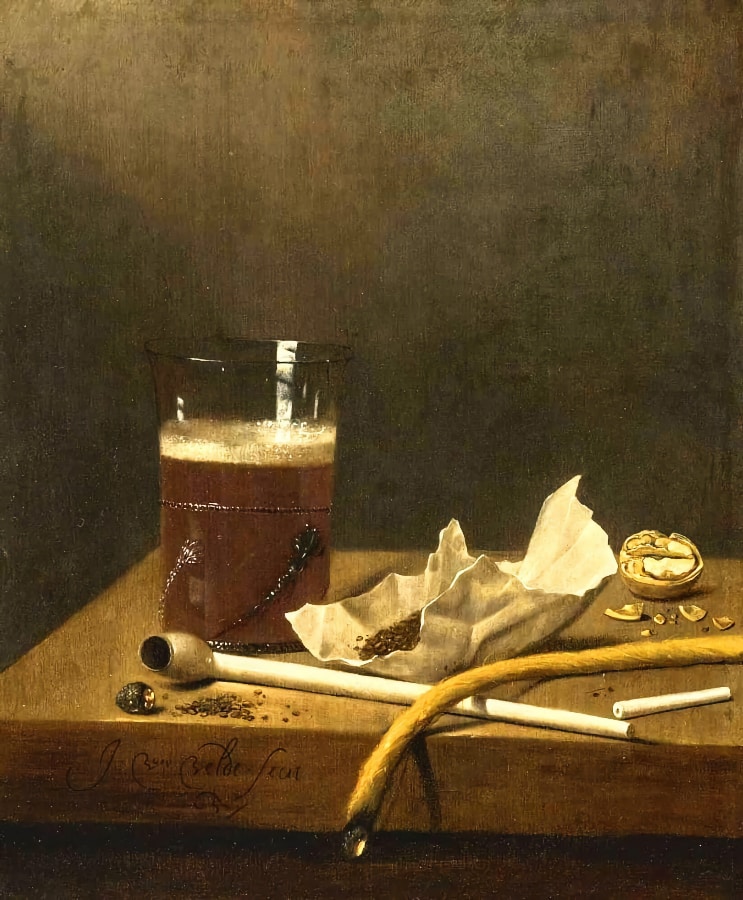 Nature morte avec un verre de bière, une pipe,